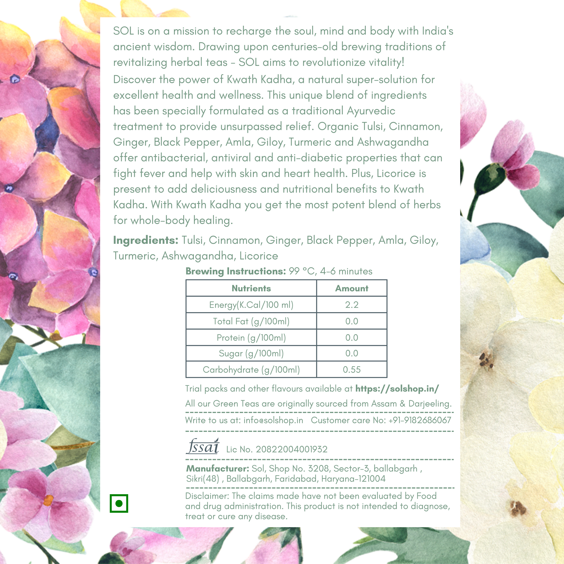 Get ready to enter the world of wellness with Kwath Kadha! This natural super-solution is here to ensure your overall health and well-being stay in tip-top shape, even during the turbulent times. Advised by the ministry of Ayush ayurveda during covid times, our time-tested and natural super-solution is an amazing blend of herbs that offer a myriad of benefits.