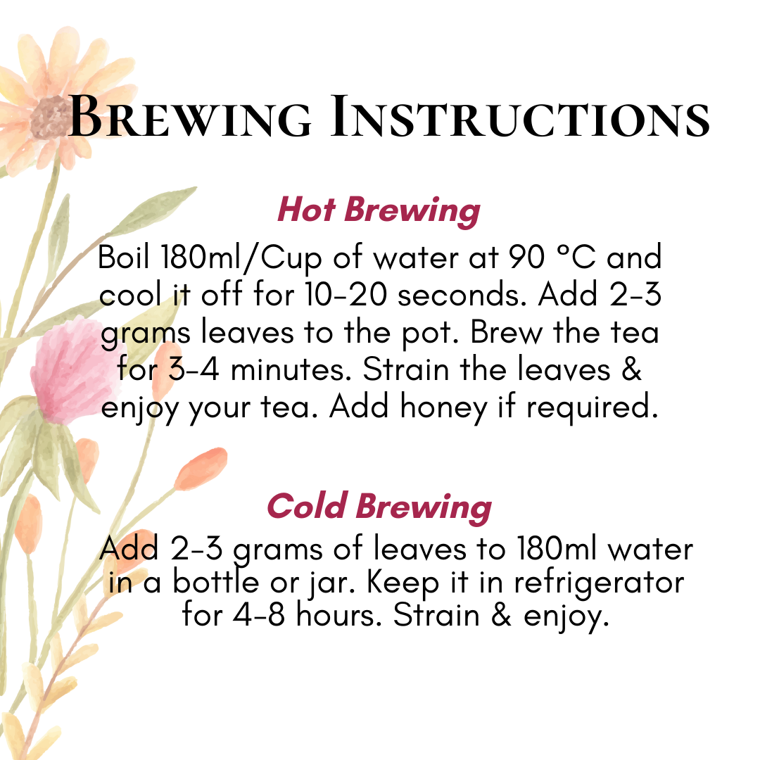 - Brewing Temperature: 90 Degree Celsius, Brewing Time: 3-5 Mins, Package Container Type: Pouch, Storage Instructions: Store in a cool dry place away from sunlight