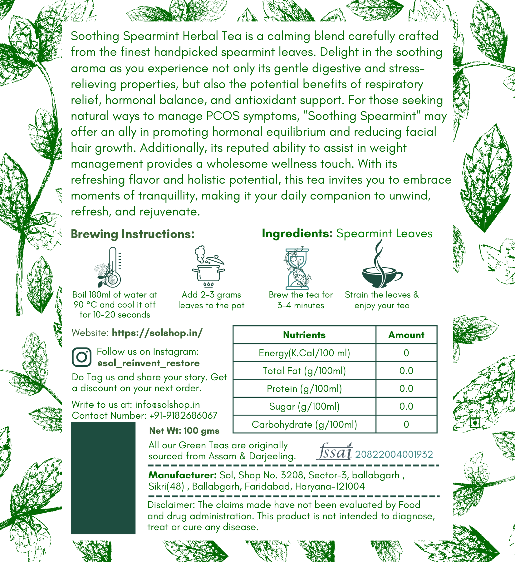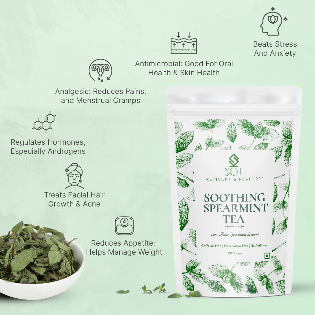 - Clear Skin: Sip on SOL Spearmint Tea to help clear up your complexion and manage acne, as spearmint reduces sebum production and inflammation in the skin.